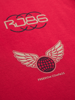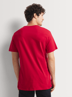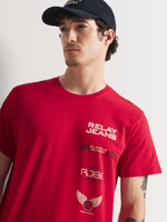 The Slimfit Racer Side Print Red Graphic T-Shirt is a striking apparel item perfect for those who love a bold style. Featuring a vivid red background with an eye-catching, dynamic racer print in contrasting white and black, this t-shirt crafted from 100% cotton single jersey fabric.