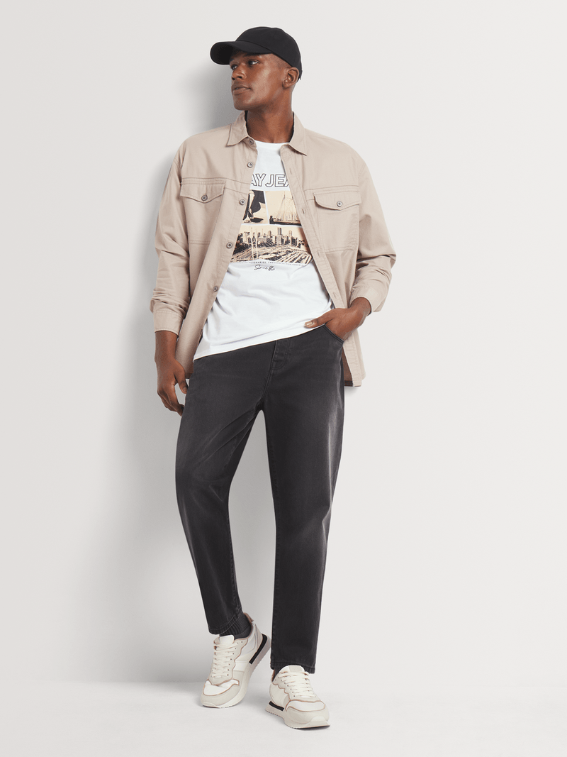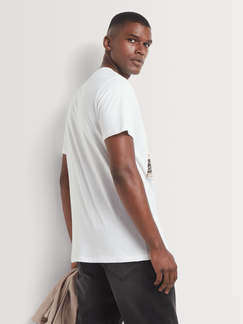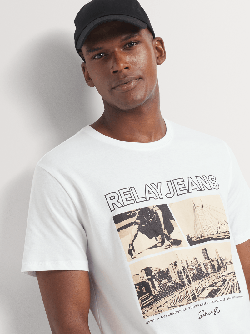 Stay stylish and comfortable in our slim fit Mandela Bridge graphic t-shirt. Made from soft single jersey fabric, this tee features a cool wash, crewneck, and a sleek slim fit. Perfect for any casual occasion, this locally-made shirt is a versatile addition to your wardrobe.