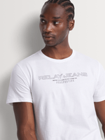 The Outline Lock Up T-Shirt is a sleek and versatile essential for any wardrobe. Designed with a modern slim fit, this tee offers a tailored silhouette that enhances your look. Crafted from soft, breathable cotton, it ensures all-day comfort. The standout feature is the bold outline lock-up graphic on the chest, adding a stylish edge to this classic white t-shirt.