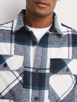 dd a bold edge to your casual wardrobe with the Relay Jeans Men's Smudge Check Overshirt. Designed in a versatile blue and white check pattern with a smudged, lived-in look, this overshirt effortlessly blends street style with rugged charm. Crafted from a durable yet breathable fabric, it offers a relaxed fit that's perfect for layering over your favorite tees or hoodies.
