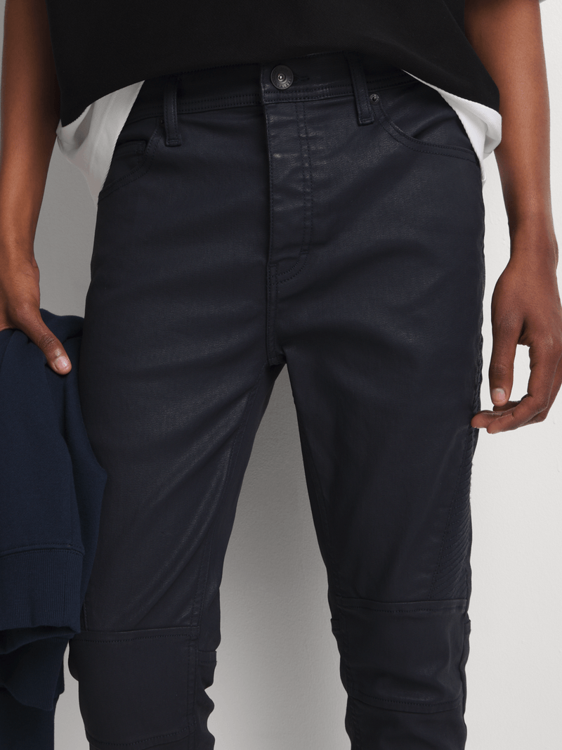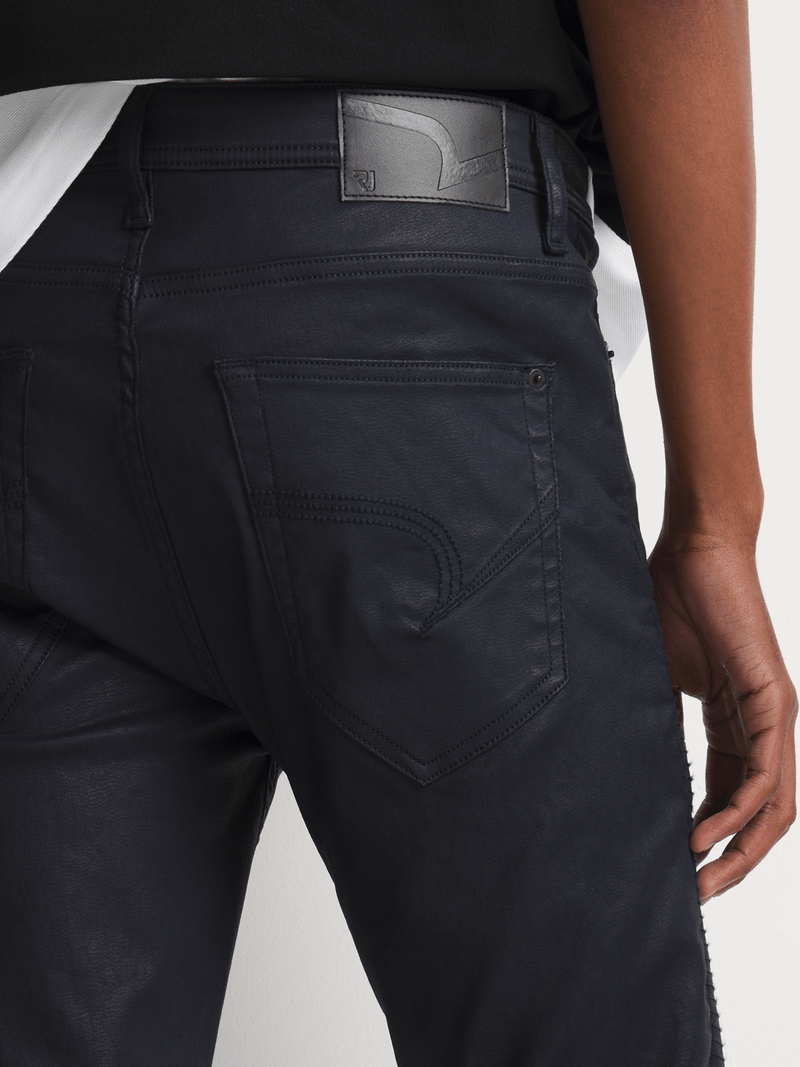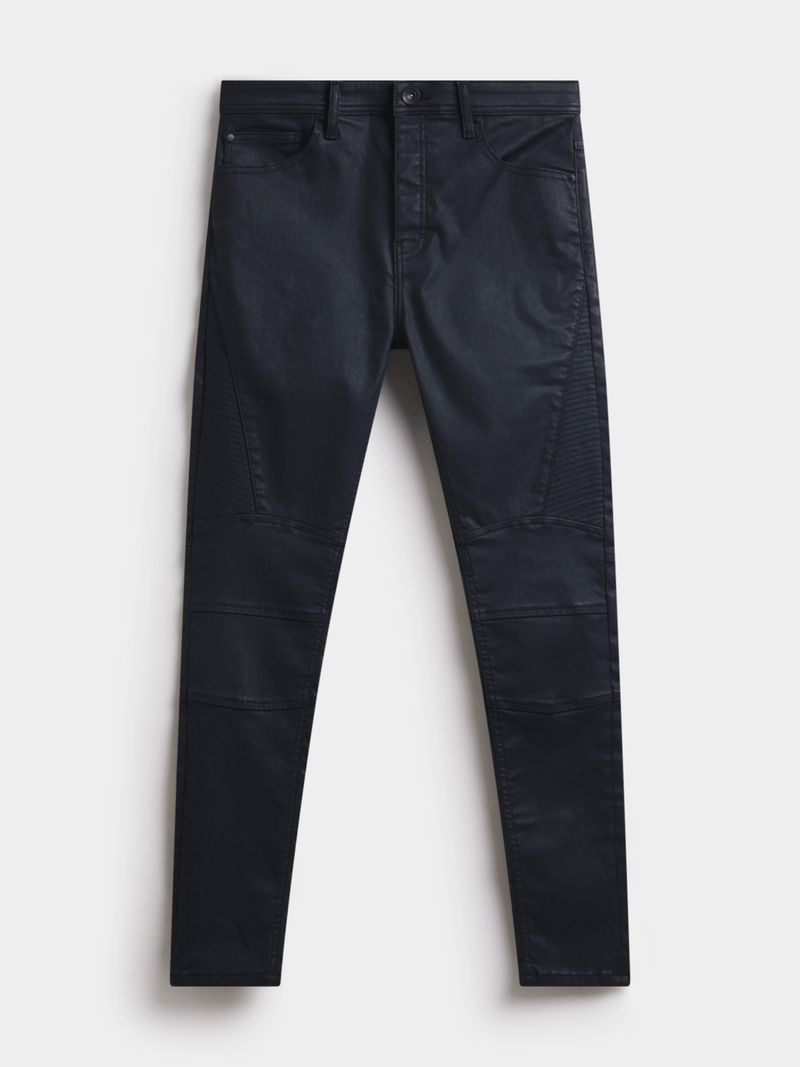 Make a bold statement with the Relay Jeans Men's Super Skinny Biker Indigo Coated Denim—a modern essential for those who like their denim edgy and form-fitting. Designed with a regular rise and an ultra-skinny fit from hip to hem, these jeans deliver a sleek, street-ready silhouette that stands out. The indigo-coated finish adds a unique, slightly glossy texture, giving these jeans a rugged, biker-inspired edge perfect for nights out or elevated casual wear.