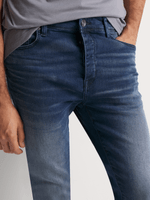 Relay Jeans Men's Super Skinny Med Wash Blue Denim, an essential addition for the modern man. Crafted with a medium wash finish and subtle distressing, these jeans offer a sleek, super skinny fit. Made from cotton and elastane, they ensure comfort and style, reflecting a sustainable choice.