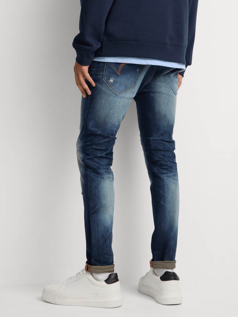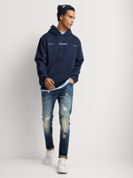 The Relay Jeans Men’s Super Skinny Rip n Repair Indigo Denim is designed with a regular rise and a super tight fit from top to bottom for a sharp, body-contoured silhouette. Made from extra stretch fabric, it delivers comfort and flexibility while holding its shape throughout the day. The rip and repair detailing adds raw texture and worn-in character, while the faded indigo wash keeps it authentic and versatile. Built for bold self-expression, everyday comfort, and confident real-life wear, grounded in denim, defined by movement.