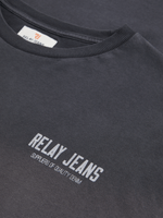 The Relay Jeans Mens Boxy Washed Graphic Twofer Grey T-Shirt combines street style with comfort. It features an oversized fit and washed-effect fabric, showcasing a bold front graphic for an urban edge. The layered twofer design adds dimension, while the cotton single jersey ensures soft, breathable wear.