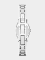 Perfectly petite, our Everly three-hand watch boasts a small, feminine stainless steel case. Stylized numerals and indexes add the finishing touches to the matching silver-tone dial.