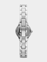 The 23mm Tenley watch features a pink mother-of-pearl dial, three-hand movement and silver-tone metal bracelet.