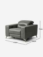 The perfect blend of modern design and everyday luxury, the Retreat Motion 1 Seater Recliner Leather Couch redefines convenience and comfort. With leather uppers for a luxe feel and durable PU sides and back, this contemporary recliner is designed with flexibility in mind. The individually powered footrest and headrest let you customise your reclining angle for personalised relaxation, while a flexible backrest offers support. Control buttons are tastefully concealed on the inner sides to keep the look clean and streamlined.