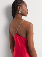 Camis are having their moment. Update your look with our Rhinestone Satin Cami with glam rhinestone straps that bring a touch of luxe to your look. Dress up your favourite jeans and complete the look with heels, or pair it with a satin maxi skirt and stilettos for a smart event.