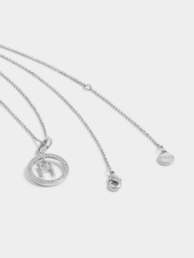 Expertly crafted in Rhodium Plated Brass Base Metal, this set includes a stylish pendant necklace, which feature the initial H embraced by a halo of pavé set Cubic Zirconia and round cut solitaire stud earrings. These earrings feature hypo-allergenic posts and stoppers for sensitive skin.