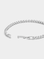 Expertly crafted in Rhodium Plated Brass Base Metal, this elegant tennis bracelet features a glittering voyage of 2mm round-cut Cubic Zirconia in bezel settings.