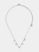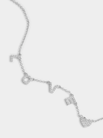 Expertly crafted in Rhodium Plated Brass Base Metal, this romantic set includes a “LOVE” letter necklet and a pair of stud earrings featuring round-cut Cubic Zirconia.