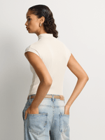 Our Rib High Neck Extended Shoulder Top is an elevated basic that works with a wide range of looks. Wear it with denim, skirts and trousers, or layered under jackets and waistcoats.