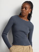 Our Rib Knit Fitted Long Sleeve Jersey is the perfect layering piece. This warm lightweight knit is fitted, great for wearing under jackets and coats.