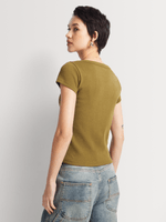 Our Rib Scoop Neck T-Shirt is a versatile basic for your tee collection. Made from comfortable and breathable ribbed cotton stretch, this tee has a flattering low scooped neckline, great for wearing with everything from jeans and pants to skirts and shorts.