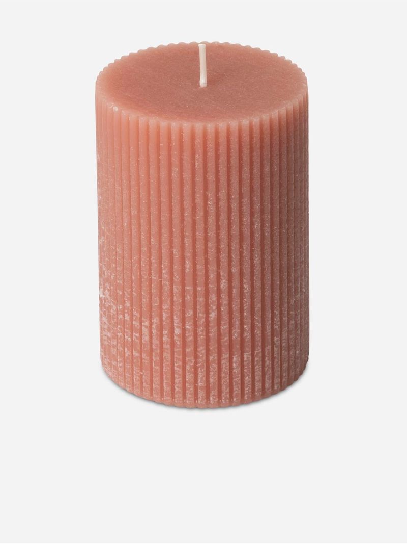 Introducing our Ribbed Cylindrical Candle in Reddish Brown. This candle measures 7X10cm and is made of wax. It features a ribbed design for a touch of texture. It adds a warm and cozy ambiance to any space.