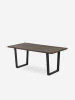 Upgrade your dining space with the Riley Dining Table in elegant grey shade. Made with elm wood veneer and powder-coated metal. Perfect for the dining room, this table adds a stylish touch to your home.