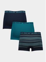 Refresh your underwear drawer with this Teal Boxer 3 Pack from Relay Jeans. These patterned boxers are made from a woven stretch fabric with a smooth seamless construction for all-day comfort and no lumps or bumps under your clothing. The Relay Jeans logo on the waistband elevates these everyday essentials.