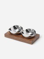 The Robert Welch Drift Pinch Pot Set in Stainless Steel is an elegant addition to the table. Ideal for salt and pepper, condiments, spices or dips, the two stainless steel bowls with a beautiful fluid shape nestle on top of an oiled walnut base. Presented in a gift box, this set makes an ideal present.