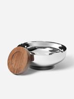 The Robert Welch Limbrey Bowl in Stainless Steel features a mid-century style inspired by 1960s design. This modern interpretation is made from 18/10 mirror-polished stainless steel with a removable wooden base made from oiled Walnut, containing a magnet to hold it in place.