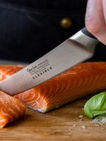 The Robert Welch 16cm Professional Flexible Utility Knife has a flexible blade, for skinning and filleting fish or boning and carving meat and poultry. With an ice-hardened, precision-sharpened blade fully forged from high-quality German stainless steel with a hand-applied 15° edge for a harder, more resilient blade with exceptional, lasting sharpness, and a classically shaped handle, the added flexibility ensures ease of handling around the bone and makes more precise cuts to help reduce any damage to delicate flesh.