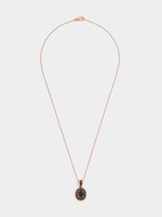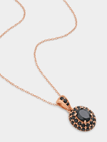 Expertly crafted in Rose Plated Sterling Silver, this bold pendant on a chain features an oval-cut black Cubic Zirconia in a double halo setting and a bale enhanced by pavé set stones.