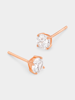 Expertly crafted in Rose Plated Sterling silver, these beautiful 5mm stud earrings feature round-cut Cubic Zirconia solitaires.
