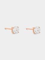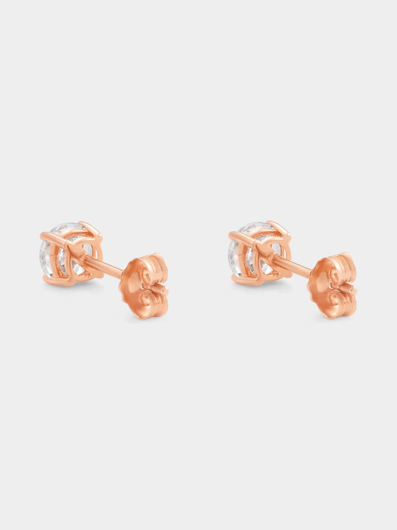Expertly crafted in Rose Plated Sterling silver, these beautiful 5mm stud earrings feature round-cut Cubic Zirconia solitaires.