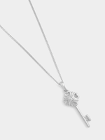 Expertly crafted in Rose Plated Sterling Silver, this beautiful clover key pendant on a chain features a round-cut Lab Grown Diamond solitaire.