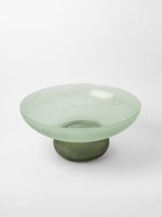 Bring subtle pops of colour into your space with coloured glass objects like our Round Footed Smooth Glass Bowl. Made from two shades of glass, this round footed wide bowl is sandblasted for a striking matte finish. Place it on a styled shelf or sideboard as a decorative item, or fill it with fresh fruit or other decorative objects.