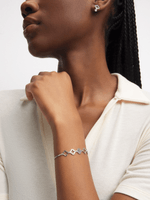 Rhodium Plated Brass Cubic Zirconia Clover Slider Bracelet & Earrings Set