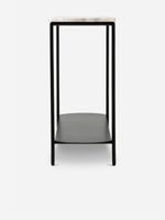 The Ruby Marble Console Table is a beautiful accent piece to elevate an entryway, passage, or living room space. Modern and sophisticated, it features a powder-coated metal body with slim legs and a lower shelf. A richly veined marble top makes the ideal surface to display decor, art, frames or fresh flowers.