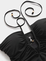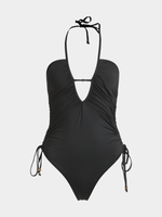 Look chic at the beach in this ruched one piece swimwear by Foschini. The silhouette flatters your curves, crafted from poly spandex for a comfortable fit. Made with 82% nylon and 18% spandex, this classic black piece is a must-have for your swimwear collection. Easy care instructions - cool wash only.