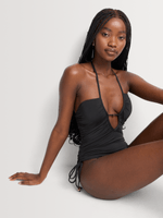 Look chic at the beach in this ruched one piece swimwear by Foschini. The silhouette flatters your curves, crafted from poly spandex for a comfortable fit. Made with 82% nylon and 18% spandex, this classic black piece is a must-have for your swimwear collection. Easy care instructions - cool wash only.