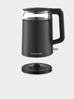 The Russell Hobbs Fusion 1.7L Double Wall Glass Kettle combines high-quality glass with a stylish matt black housing for a contemporary look. The generous size ensures there is enough water for the whole family, while the powerful concealed element offers fast boiling. Automatic switch off, boil dry protection and overheat protection keep you safe, while the cordless design is convenient to use.