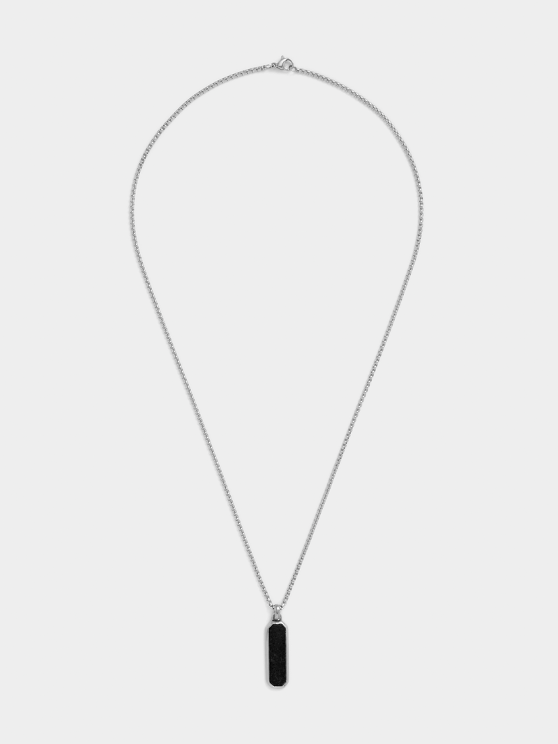 Expertly crafted in Silver Plated Stainless Steel, this stylish oblong pendant on a 50cm box chain features a Lava Stone inlay. All Tempo Jewellery is hypoallergenic, waterproof and durable, boasting a 1-year guarantee.
