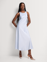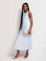 Make a subtle statement in our Satin Back Detail Column Dress. The cutaway back detail makes a striking focal point on an otherwise understated style. Wear it to a special occasion or event paired with heels and a clutch.