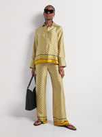 Printed satin is a major trend this season. Wear our Satin Border Print wide-leg pants with the coordinating Satin Border Print Shirt for an on-trend fit, or wear them with a simple strappy vest and heels for a more subtle look.