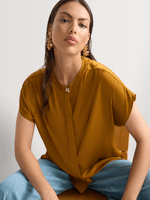 Our Satin Cap Sleeve Mandarin Collar Shirt is a versatile addition to your wardrobe. Pair it with smart trousers and court heels to the office, or dress it down with dark denim and flats on the weekend.