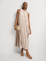 Our Satin Pleated Halterneck Column Dress is a beautiful choice for summer style. Wear it with strappy heels and bold jewellery for a dressy look, or add sneakers and a shopper for a different take.
