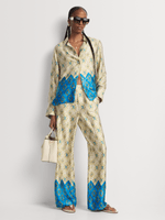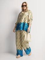 Embrace dopamine dressing this season with bold prints. Wear our Satin Printed Border Boxy Shirt with the matching bottoms for an on-trend co-ord set. Add colourful sneakers or flats to complete the look.
