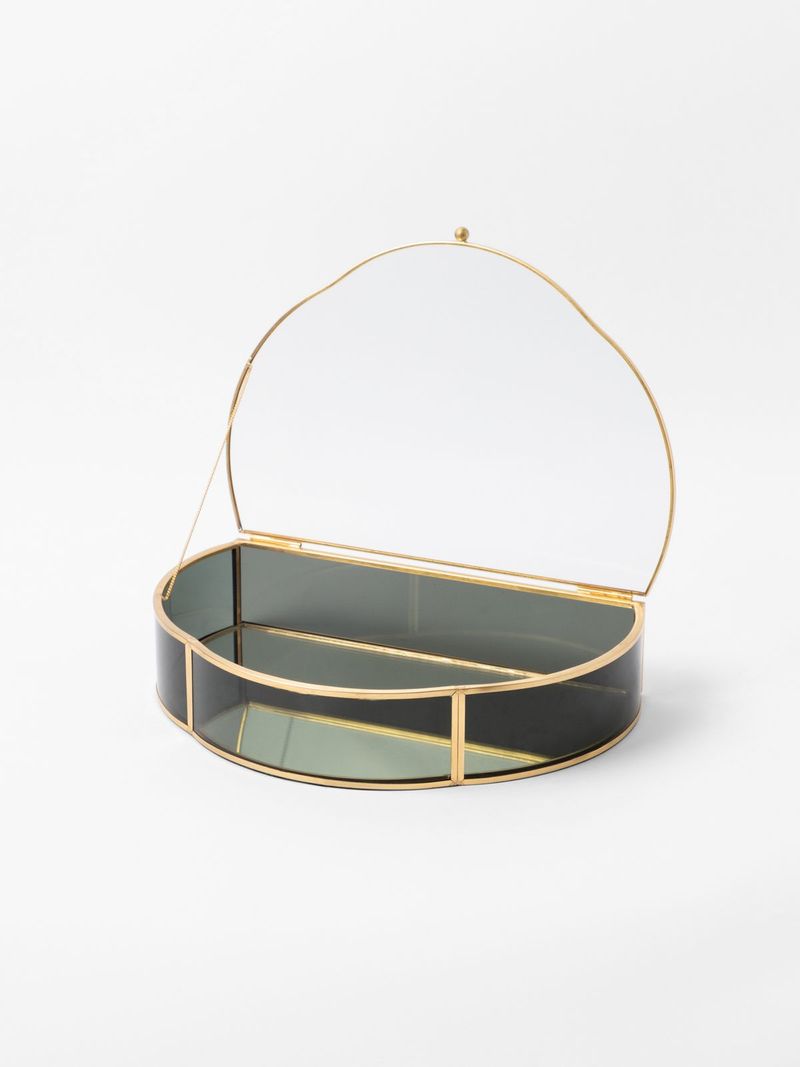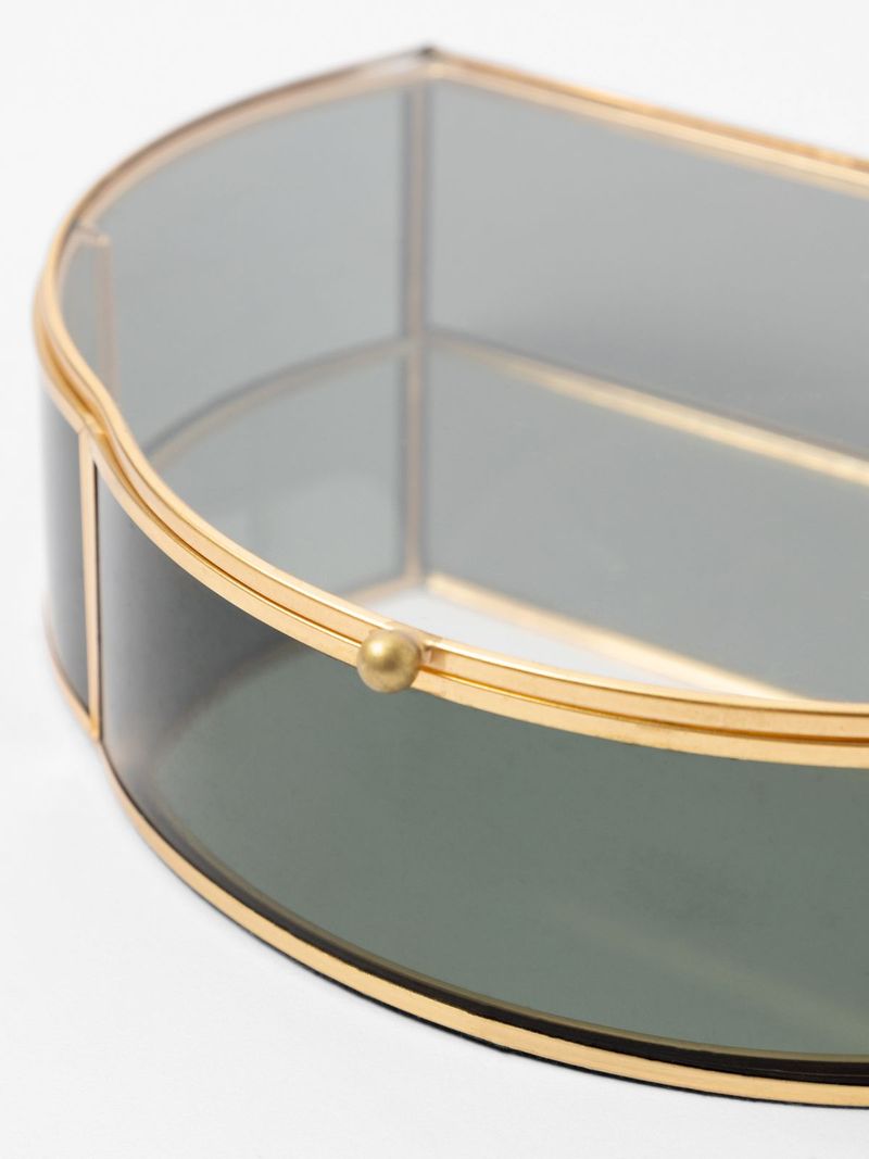 Stylish and functional, our Scalloped Glass & Metal Box brings a luxe touch to a side table, shelf or console. Gold edging with a mirrored bottom and a scalloped edge gives it an Art Deco-inspired feel. A clear glass top lets you see what's stored inside.