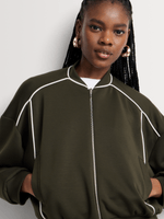 Our Scuba Piping Detail Zip-Through Jacket is an on-trend update for your wardrobe. Wear it with the matching bottoms for a co-ord set. Add sneakers and a monogram shopper to complete the look.