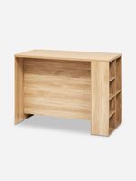 The Self Assembly Five 5 Abana Kitchen Island brings a modern feel to your home with its mid-century-inspired design. Create more space in your kitchen with this compact and cleverly designed piece. One side features a bar height top, and the other concealed cupboard storage for your everyday essentials. Open shelving on the short side makes a great display spot for decor or cookbooks.