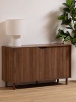 The Self Assembly Five 5 Slidy Sideboard is the perfect choice for your living room. The dark walnut finish, slim tapered legs and sleek handleless cupboards bring a sophisticated feel to your space. The sliding doors open smoothly to reveal internal shelf storage, perfect for everything from glassware to crockery and linens.