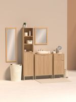 The Self Assembly Five5 Tasso Column Shelf brings a fresh, modern feel to your home with its light wood-look finish, on-trend fluted details, and gold-tone metal handles and base. Tall and slim, its perfect for small spaces and looks great in a bathroom for storage and display. The cupboard below is ideal for bathroom accessories while the top shelves can hold a combination of decor and everyday essentials.