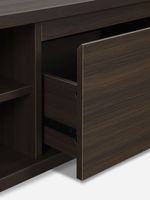 Introduce clean, contemporary styling to your living room with this modern media unit, designed for both sleek aesthetics and practical organisation. The rich dark‑wood finish brings warmth and sophistication, while the streamlined silhouette pairs effortlessly with a wide range of décor styles.