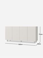 Update your home with the fresh and unique Self Assembly Cloud range featuring a glossy lacquered white finish, rounded feet, and ribbed fronts. The Self Assembly Cloud Sideboard is the perfect refresh for your living space. With four spacious cupboards, it's ideal for storing everything from linens and crockery to seasonal decor and blankets. Add your personal touch to the top with candles, vases and lighting.
