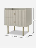 The Self Assembly Heidi Range is fresh and modern with brushed gold legs and handles that pair beautifully with fluted drawer fronts and doors. Refresh your bedroom with the Self Assembly Heidi Pedestal, featuring a lipped top, perfect for lighting and books, and two drawers for concealed storage.