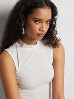 The Semi Sheer Rib Vest is a versatile basic that can be styled up and down. Wear it with jeans and sneakers, or pair it with wide-leg trousers and a lightweight blazer for a chic office look.