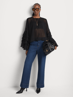 Our Sheer Textured Frill Sleeve Blouse makes a statement with its bold sleeves. Made from sheer, textured Chiffon, it has a beautiful soft drape that feels feminine and elegant. Wear it with smart trousers for a sophisticated look or contrast its frilly softness with edgy pleather bottoms.